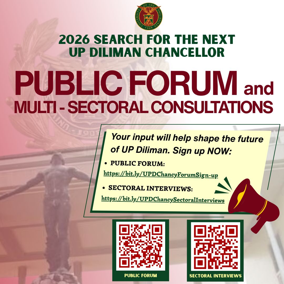 2026 Search for the Next UP Diliman Chancellor: Schedule of Activities By: Diliman Information Office | March 02, 2026 | UPDate Online - Notices | 3 min read View the nomination documents Share: Tags: Featured