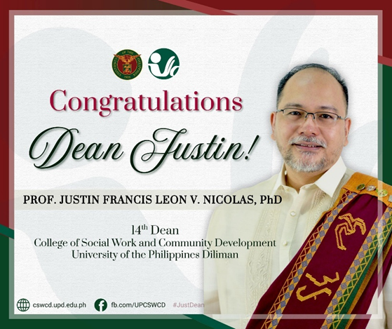 Justin Francis Leon V. Nicolas, PhD is the new dean of the CSWCD.