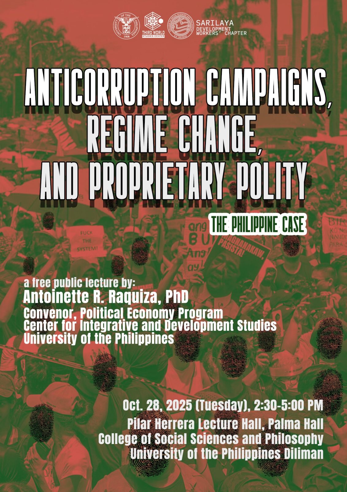 The event is organized by the UPD Third World Studies Center and Sarilaya-Development Workers’ Chapter.