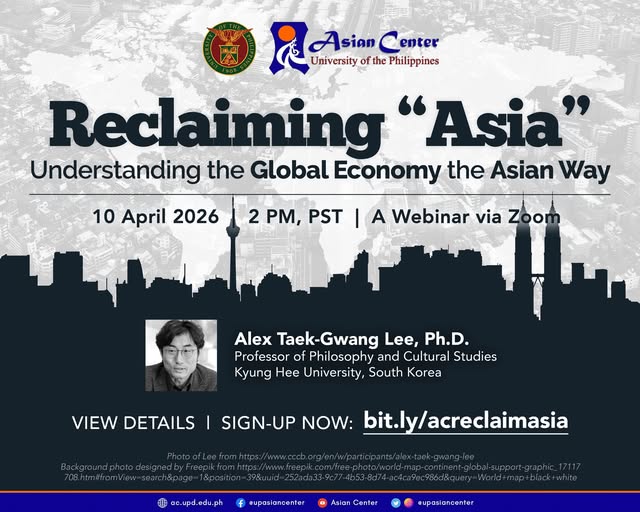 Date: Apr 10 | 2:00 PM - 4:00 PMEveryone is invited to the webinar “Reclaiming ‘Asia’: Understanding the Global Economy the Asian Way” on Friday, April 10, at 2 p.m. via Zoom.