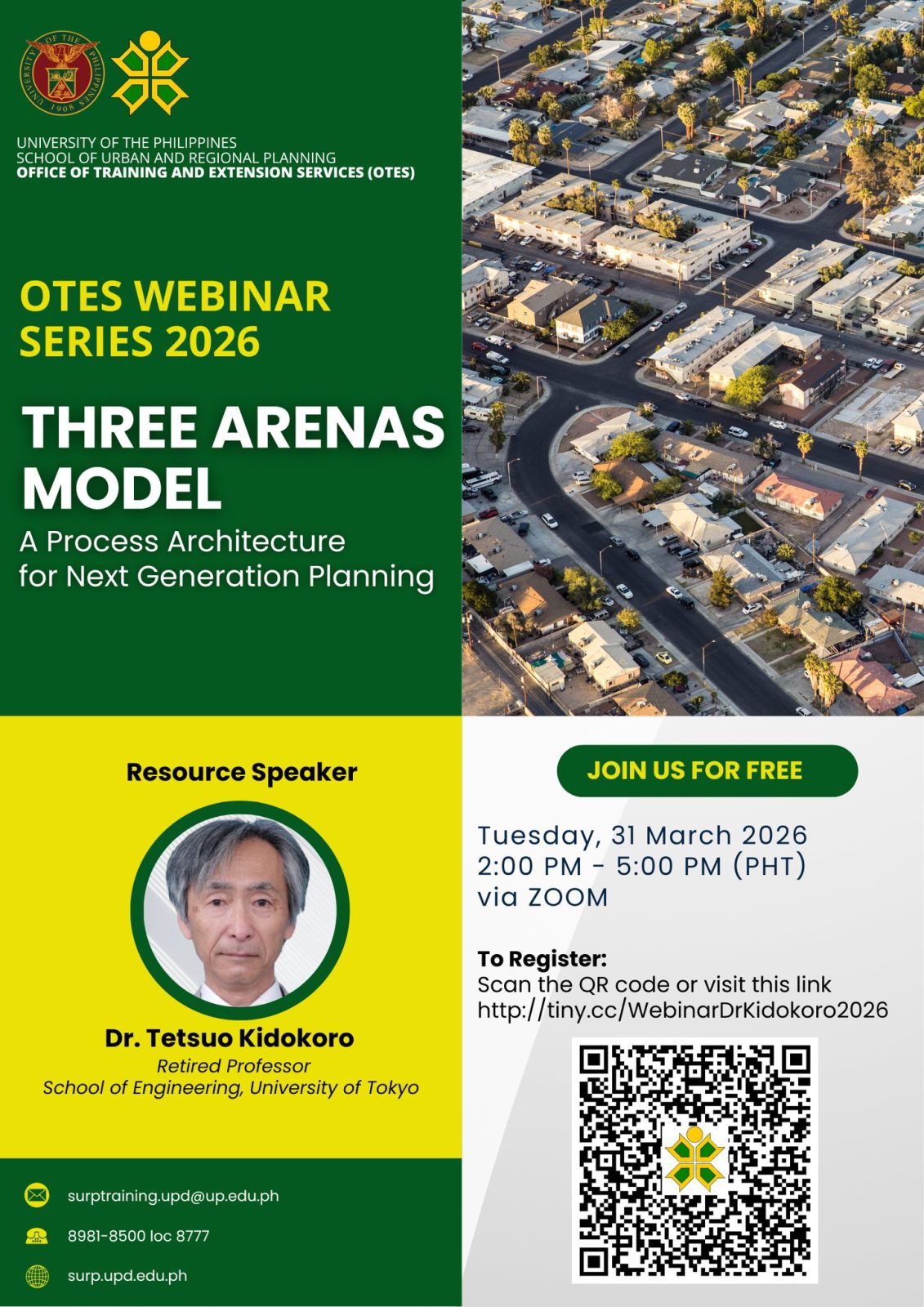 The event is organized by the UP Diliman School of Urban and Regional Planning, through the Office of Training and Extension Services (OTES). It is the first installment of the “OTES Webinar Series 2026.”