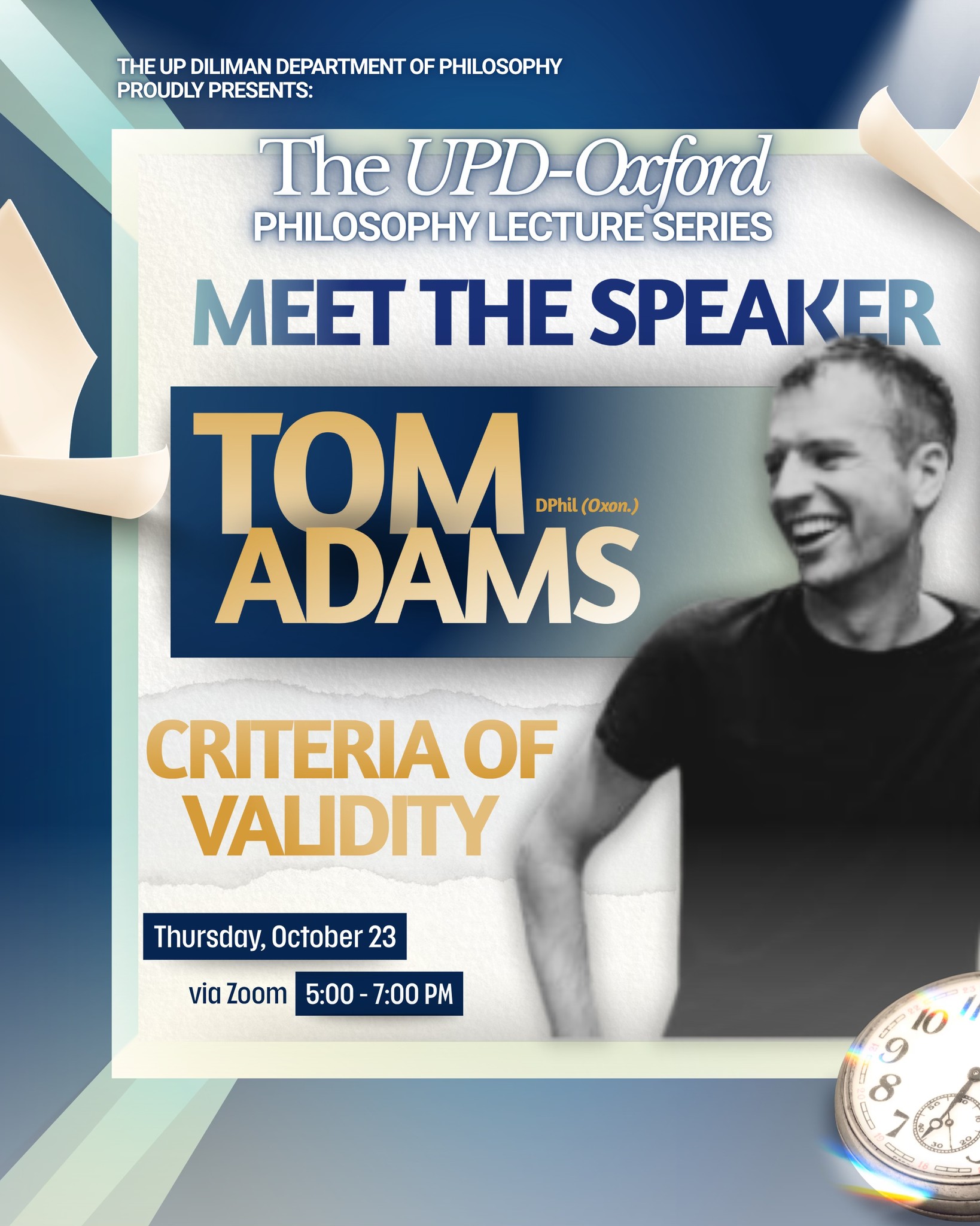 Date: Oct 23 | 5:00 PM - 7:00 PMJoin the UP Diliman (UPD) Department of Philosophy’s (DPhilo) “UPD-Oxford Philosophy Lecture Series” on Oct. 23, Thursday, 5–7 p.m. via Zoom.