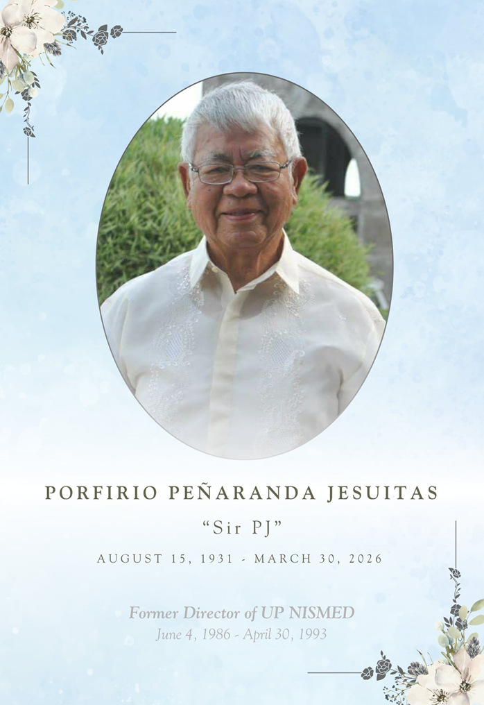 UP Diliman (UPD) extends its condolences to the family of Porfirio P. Jesuitas who passed away on March 30.