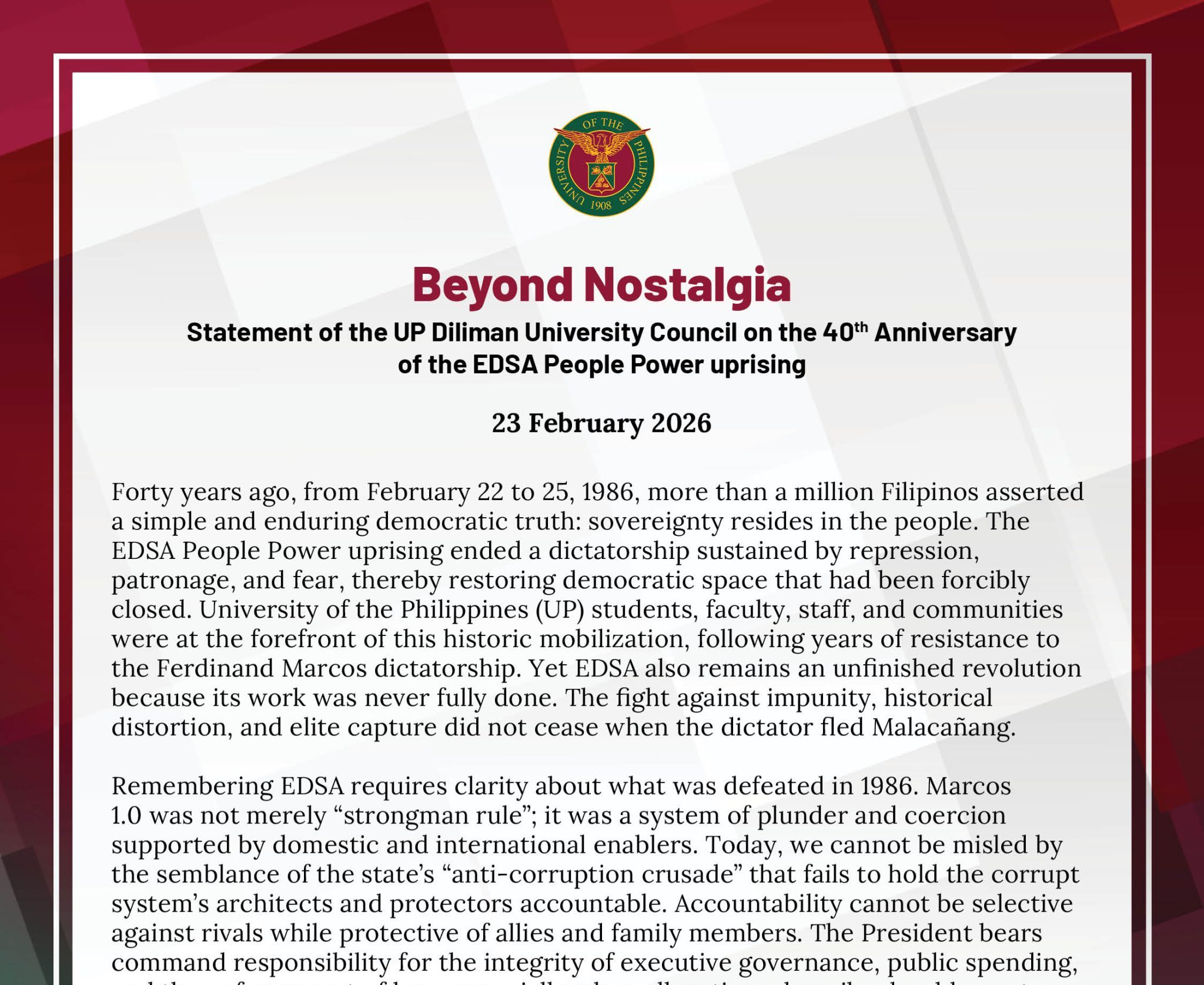 Statement of the UP Diliman University Council on the 2025 Faculty Merit Promotion By: Diliman Information Office | May 10, 2025 | UPDate Online - Statements | 3 min read Share: Tags: Featured