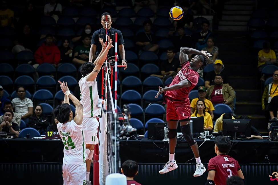 The two teams then battled it out from the onset of the fourth frame. With the game tied at 19 apiece, Tommy Castrodes ignited the UPMVT’s final push with an off-the-block attack, after which Raheem scored three consecutive cross-court spikes, and a DLSU rotation error handed the Fighting Maroons match point, 24-19.