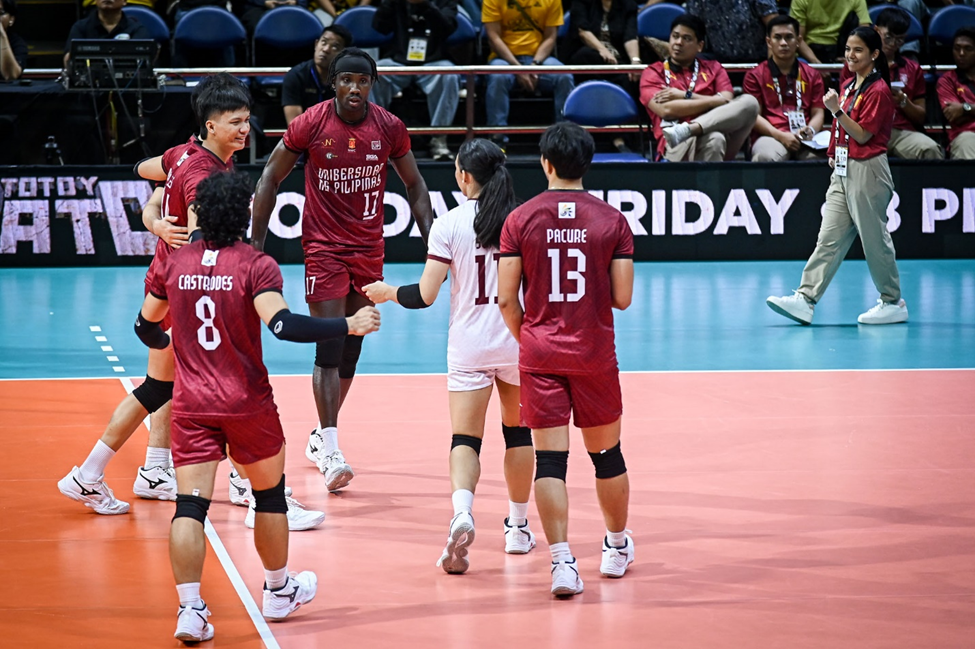 Raheem, once again, powered the UP Fighting Maroons with 29 points built from 25 attacks, three blocks, and an ace. Francisco contributed 11 points, while Robles and Pacure chipped in nine points and eight points, respectively.